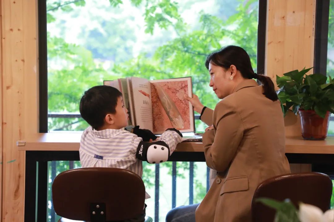 鹭鸣书屋里家长带着孩子阅读