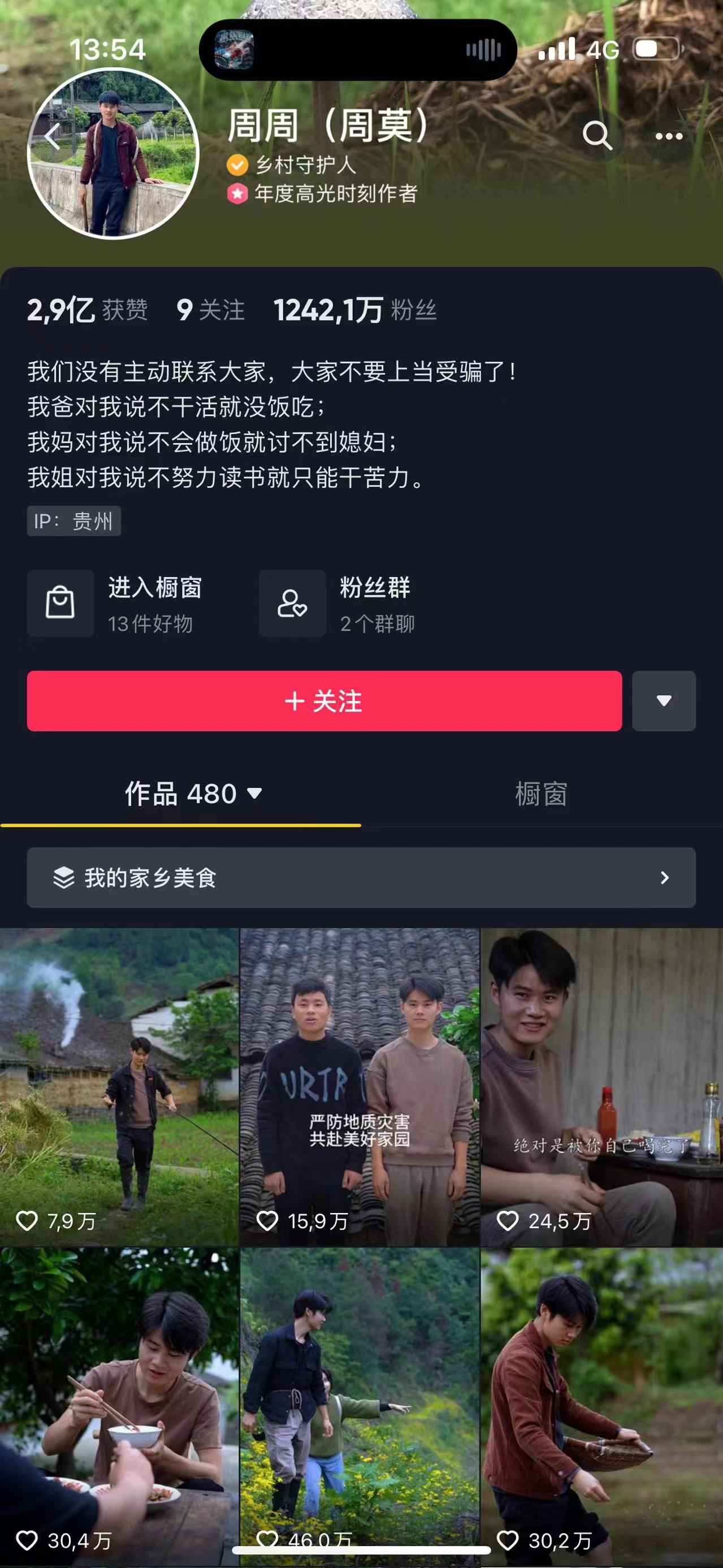 视频仅在发出不到两天时间,点赞量就接近16万次。周周(周莫)是抖音乡村守护人、年度高光时刻作者,拥有1200多万粉丝,团队的东毛也是拥有粉丝近180万。周周(周莫)最初的网名叫“念乡人周周”,创作的短视频主要以记录有意义的真实生活加上朴实无比的“唠嗑”而走红网络,让无数网友对他们田园生活无比向往。