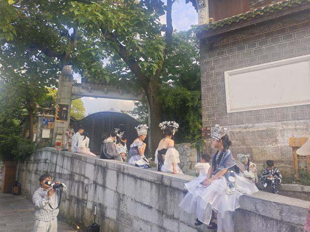 随着旅拍行业的盛行发展,更多的旅拍从业者也将目光转移到青岩背街上。据了解,青岩古镇内的旅拍馆数量不下50家,来此拍摄的游客络绎不绝,大部分店铺提供的旅拍风格各异,但都能与背街巧妙融合在一起。背街也成了来到青岩古镇必打卡的网红打开地,受到大众的欢迎。