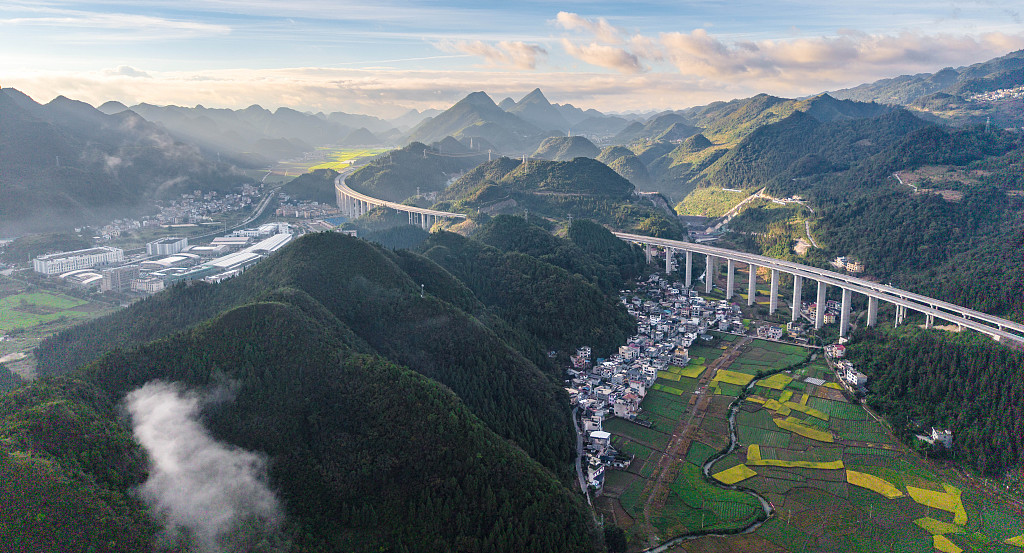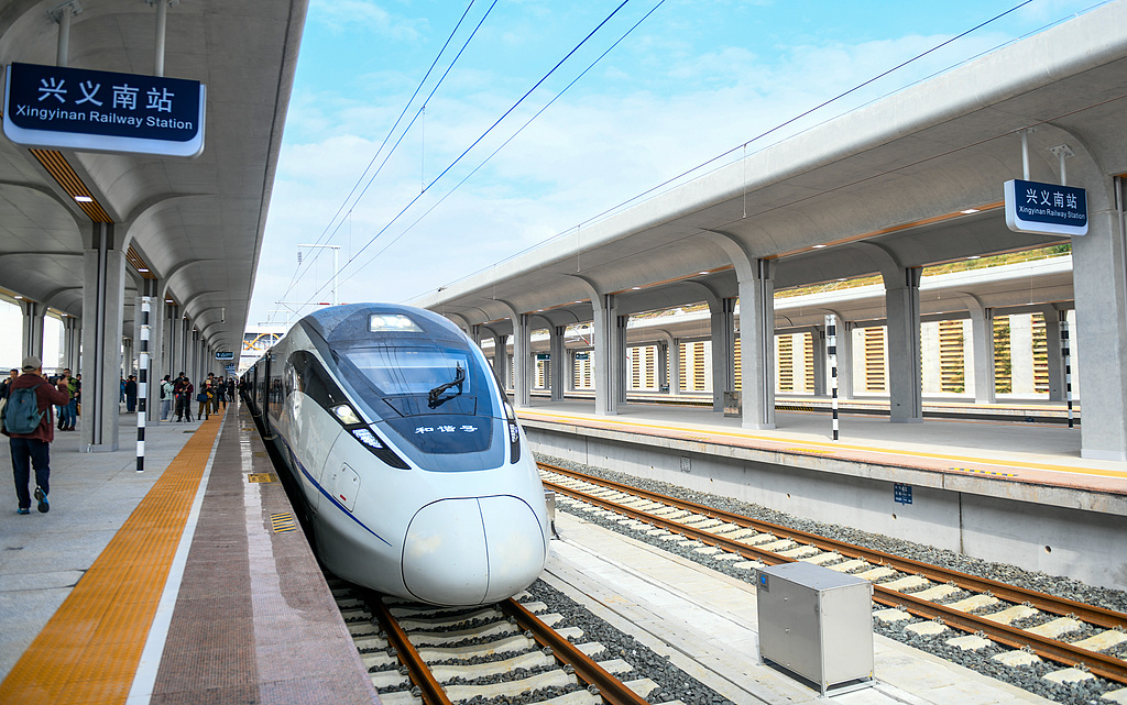 这条高铁如同一条“金线”,将沪昆与汕昆高速、南昆铁路、南北盘江红水河、兴义万峰林机场串联成链,推动形成“公铁空水”一体化的现代化综合立体交通网。