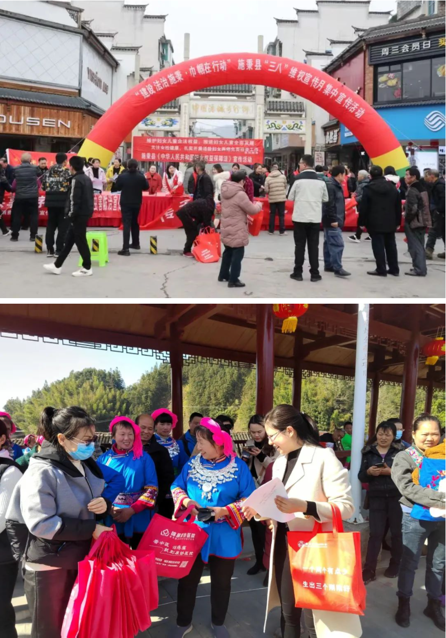 为纪念第113个“三八”国际劳动妇女节,近日,黔东南州各级妇联动起来,社会各界忙起来,分别开展以“建设法治黔东南·巾帼在行动”为主题的“三八”维权月宣传活动,积极学习宣传《妇女权益保障法》《反家庭暴力法》《未成年人保护法》《家庭教育促进法》等涉及妇女儿童法律法规、新国发2号和“桥头堡”文件精神、防范拐卖、防范电信网络诈骗、文明婚育等知识,通过图文展板、音像播放、载歌载舞、知识竞赛、宣传宣讲、义诊义剪、走访慰问、法律服务、心理咨询、司法救助、纠纷调解、发放宣传资料和宣传品等形式,进一步联系和服务好妇女群众,为妇女群众办实事解难题,进一步增强了妇女儿童获得感、幸福感、安全感。