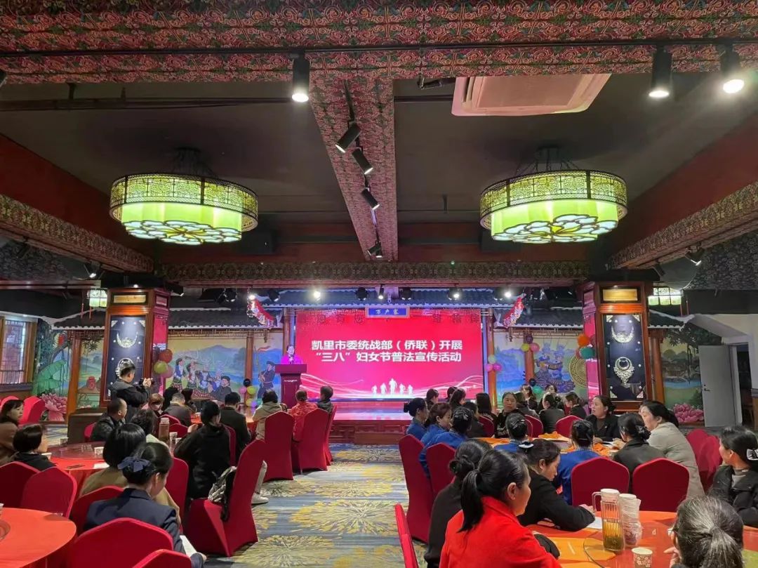 凯里市委统战部(侨联)举办“她风采 侨力量 心向党”侨界庆“三八”国际妇女节联谊活动,为党外人士代表和侨眷、侨企女同胞100余人普及家暴和妇女维权知识。