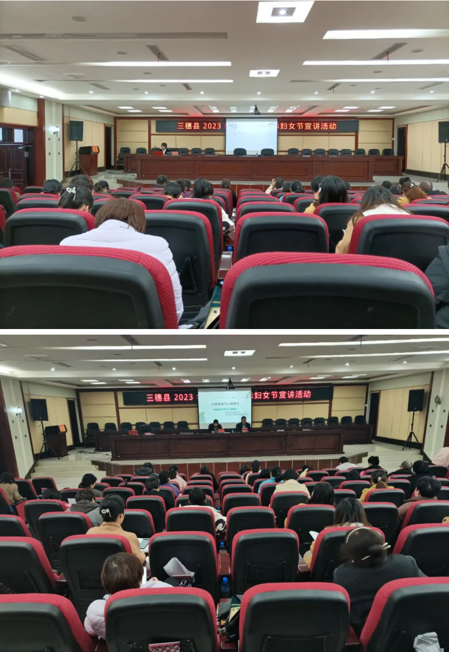 三穗县妇联联合贵州维律(三穗)律师事务所法律专家宣讲《妇女权益保障法》,联合州心理健康教育协会专家开展家庭家教及心理健康知识讲座,县直机关及乡镇妇联干部70余人参加了活动。