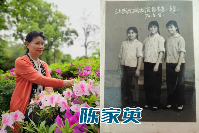 陈家英阿姨:“这是我年少时最难忘的童年回忆,那时候经济不发达,供应不全,生活很困难,所以没有良好的生活环境。照片里中间那个姐姐,当时因为年代背景下家里的变动,她要跟着家里人去另一个地方了,离别时我们就一起照了这张照片,纪念我们在一起时开心的时光。如今国家富强了,人民富足了,山清水秀,我们都享受着幸福的时光。真的很不容易,所以我们要百般的珍惜,要跟着我们的祖国一起变得强大,过好我们现在的晚年生活,要好好的把自己的生活过的更好,更美。”