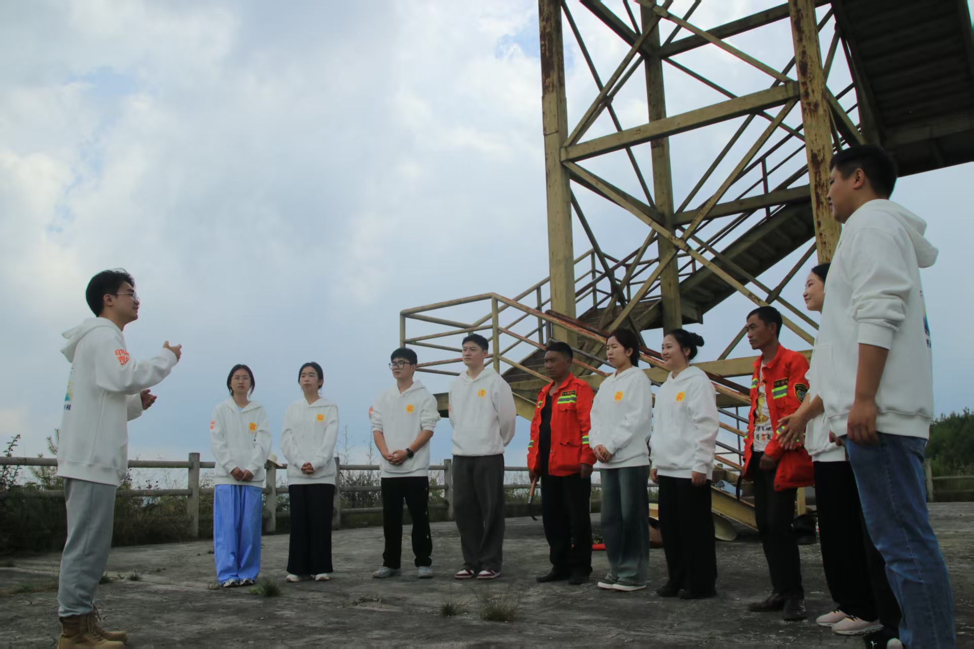队员陈鹏辉在守望台进行即兴微宣讲
