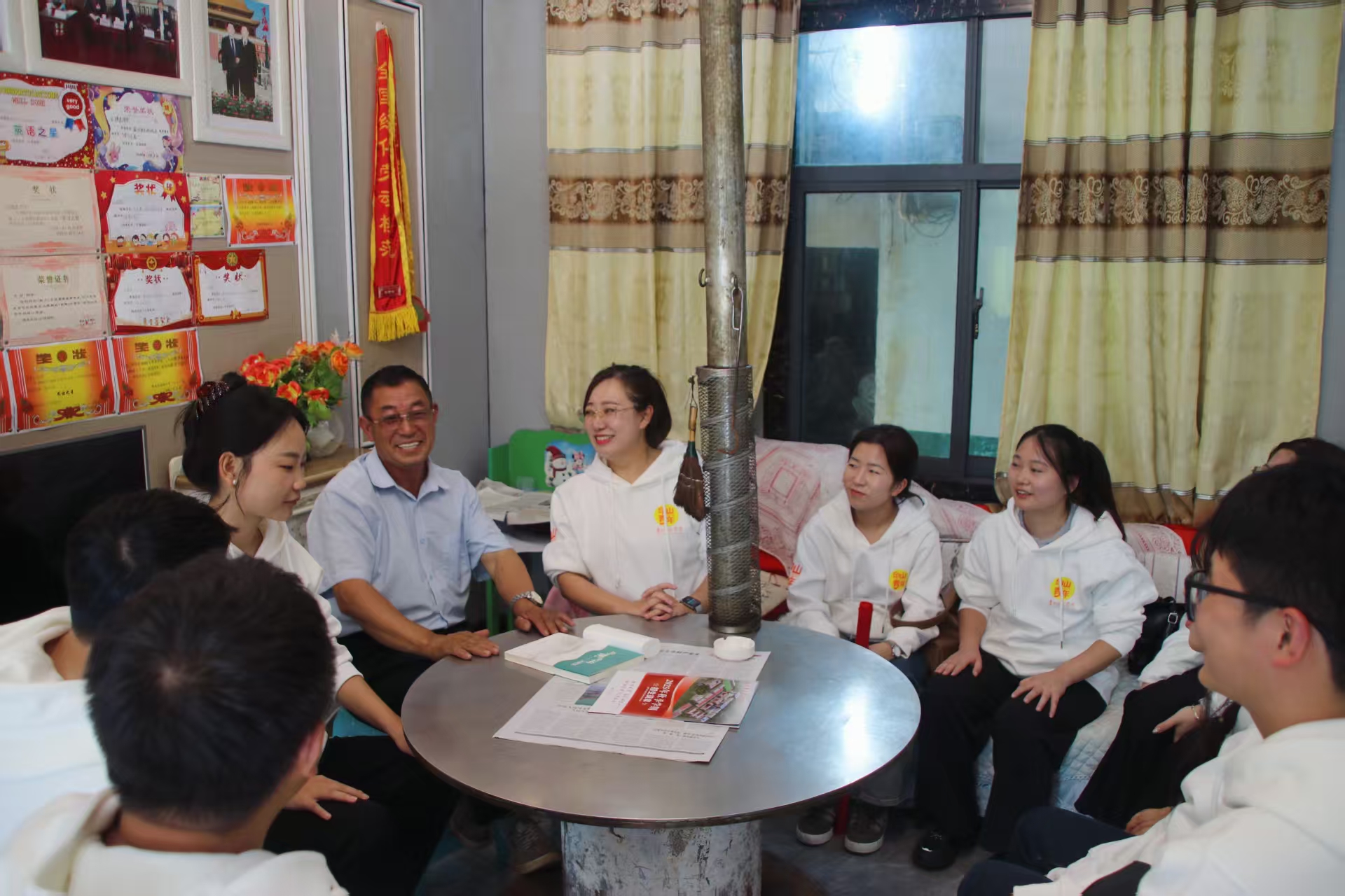 白天走进村民家中,与老人拉家常、向农户问生计,记录产业发展、生活变迁的一手素材;夜晚则与赫章县来海雀现场教学基地培训的100余名村支书在教学基地围坐研讨,以小组对话替代单向宣讲。村支书用方言分享管林、低保分配等治理经验,队员们将其与作风建设、治理效能等理论对接;入户收集的民情故事,又成为研讨中破解政策落地难题的鲜活案例。村支书的民情日记与农户的真实诉求相互印证,让学子既懂治理逻辑,又知百姓所需。这场“集中研讨+入户访谈”的立体对话,既让调研扎根泥土,更让成果锚定民生需求,为助力乡村振兴筑牢实践根基。