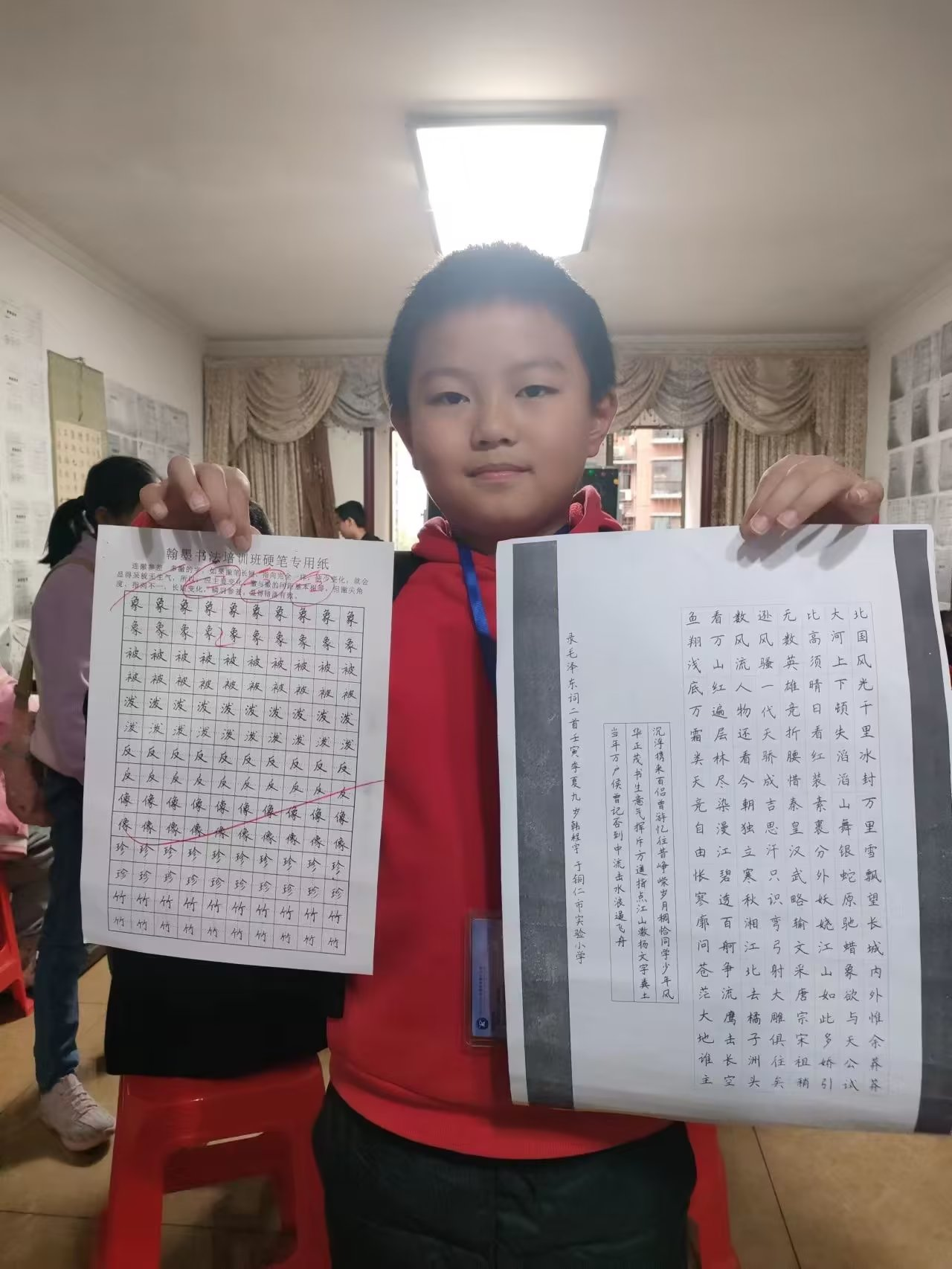 我的爱好很广泛,喜欢游泳、主持、打篮球还有硬笔书法,我的家人也非常重视并支持我的兴趣培养,还送我去专业的培训班学习硬笔书法。我知道要想精修技艺,不光需要课堂上的学习,课下的自己也刻苦地练习,每次看着纸张书练过的痕迹,内心充满了自豪感和成就感。
