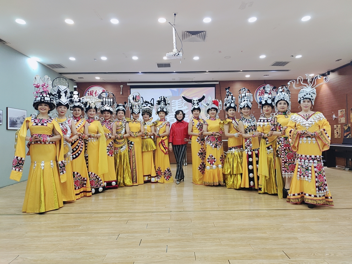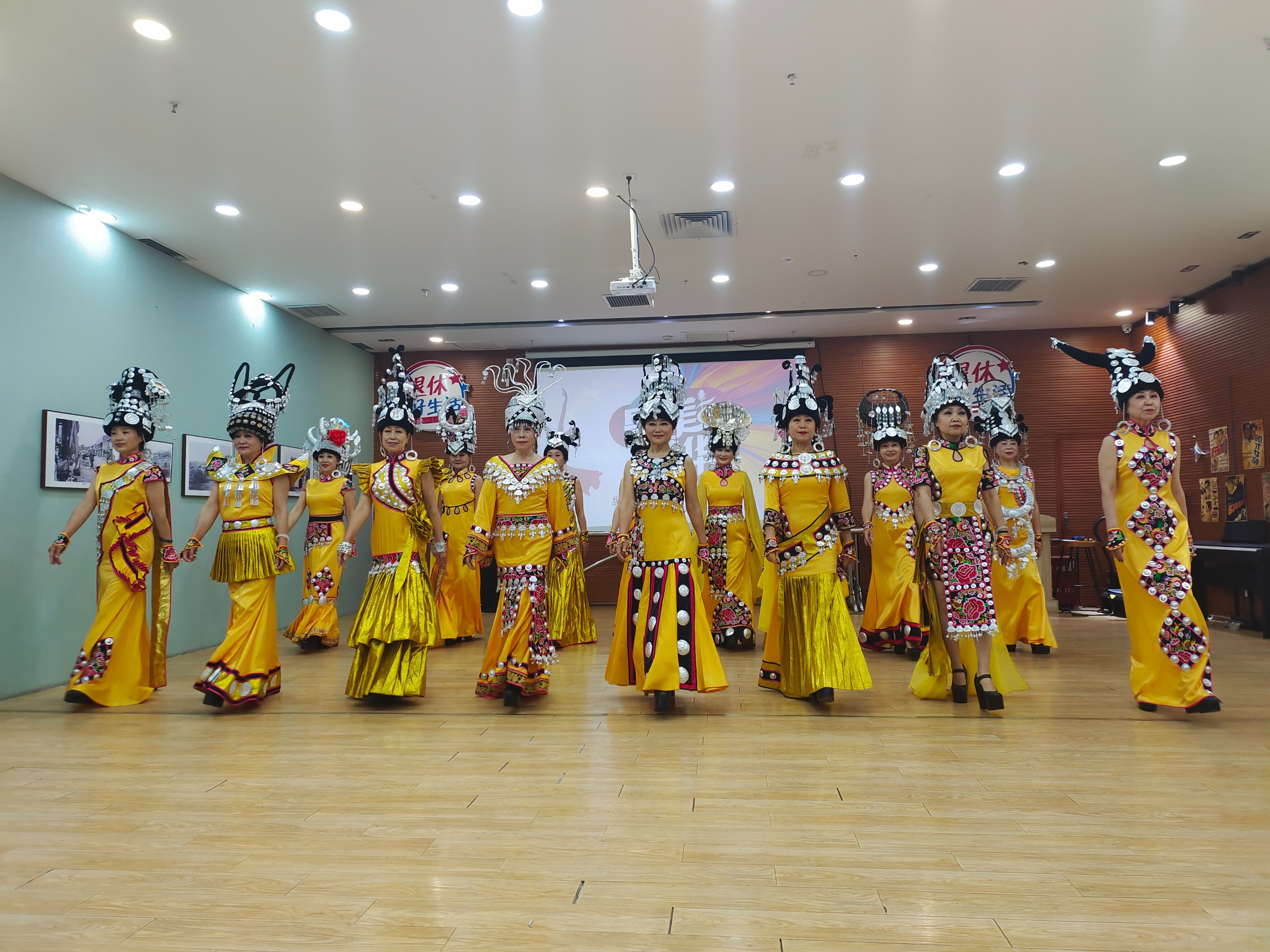 表演曲目她们选择了《贵州我最深爱的家乡》,歌唱拥有那仙境般风光的家乡!的确呀,咱大贵州无数自然景色和民族风情都充满了吸引力和神秘色彩,等待客人来发现,等待客人来相遇。阿姨们的服饰色彩虽然整体是黄色系,但往细节处看,你会发现她们的服饰和头饰设计多样化,寓意了贵州的多民族元素,也呈现了不同亮点的舞台视觉效果。