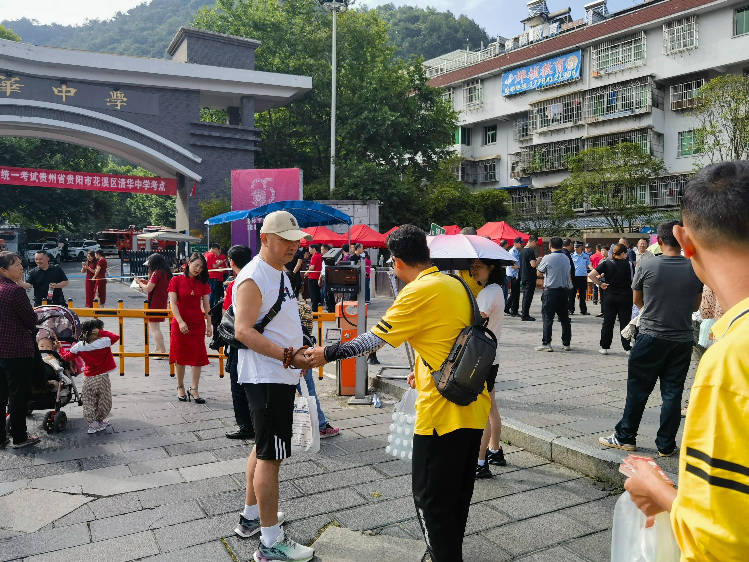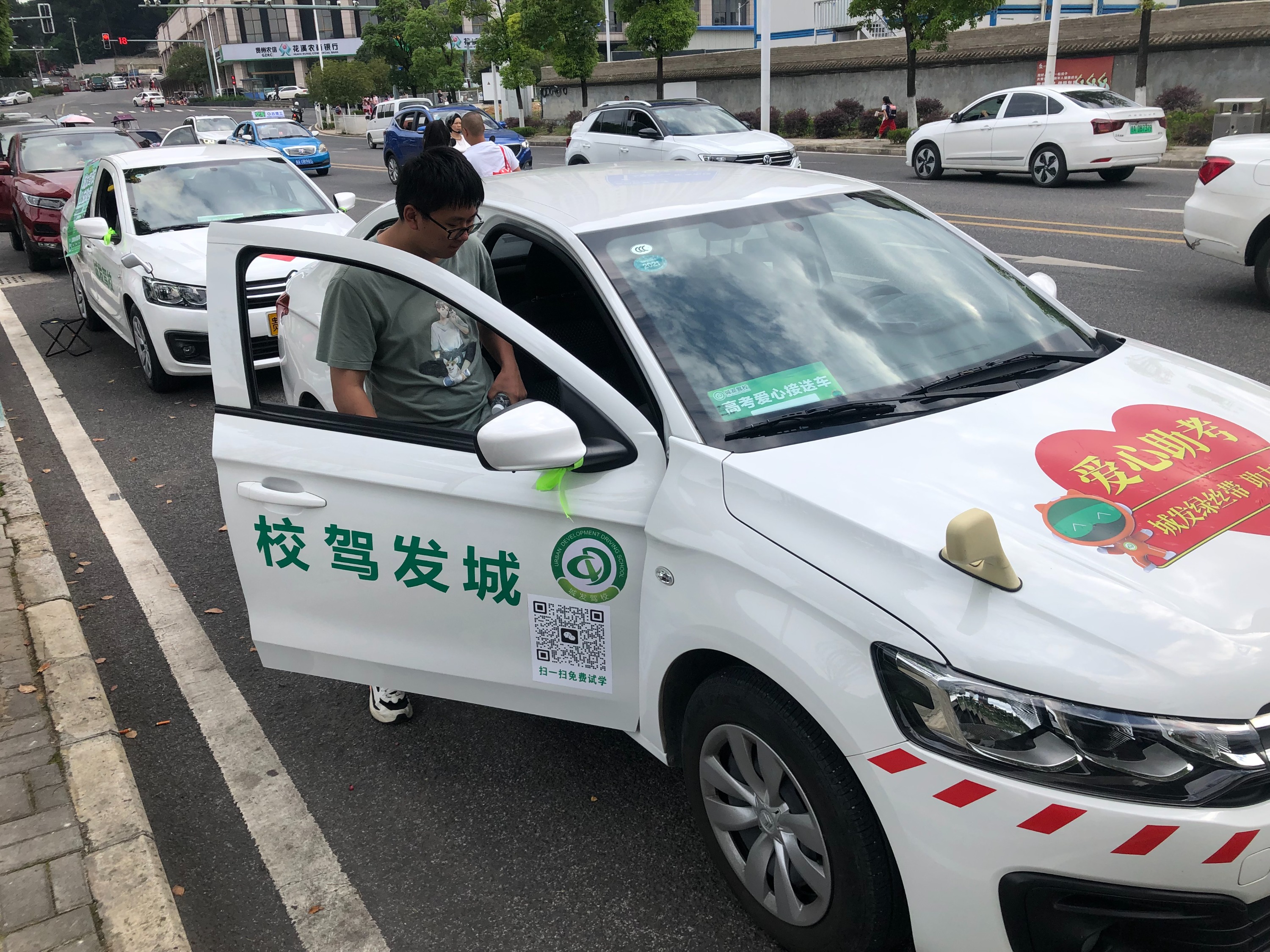城发驾校的“爱心司机”在高考期间,在花溪区四个考点:清华中学、溪南高中、贵大附中、民族中学为高考生提供驻点“助力高考”服务。有需要接送服务的高考生,可以拨打预约接送车电话:0851-86912328,进行预约。