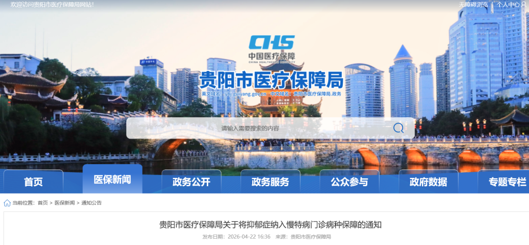 4月22日,贵阳市医疗保障局印发通知,明确自2026年5月1日起,将抑郁症正式纳入全市门诊特殊疾病病种管理,为全市抑郁症患者提供更坚实的医疗保障支撑。据悉,贵阳市也成为全省唯一将抑郁症纳入门诊特殊疾病病种管理的市(州),此举标志着我市在心理健康医疗保障领域迈出关键一步,切实回应群众心理健康领域“急难愁盼”。