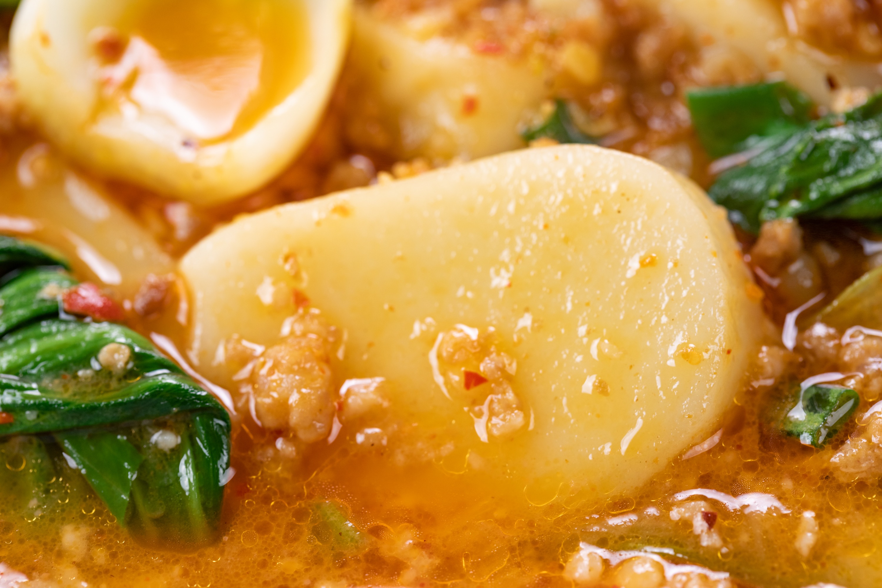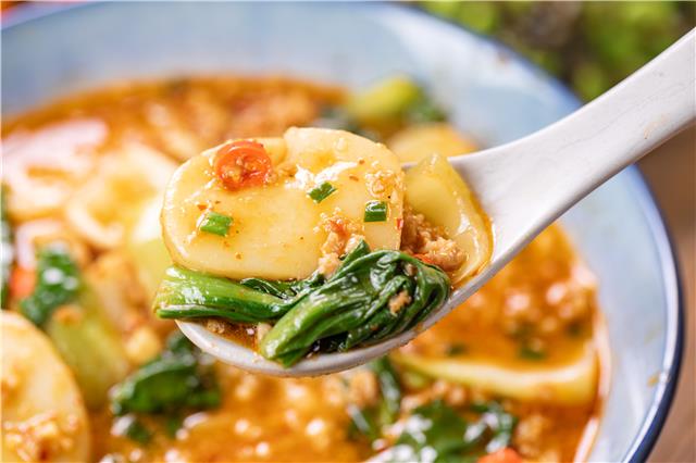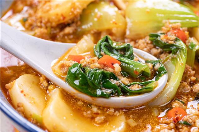 年糕的米香特别浓郁,混着肉的荤香、上海青的菜香,又软又滑,鲜到舌头都要化掉了!