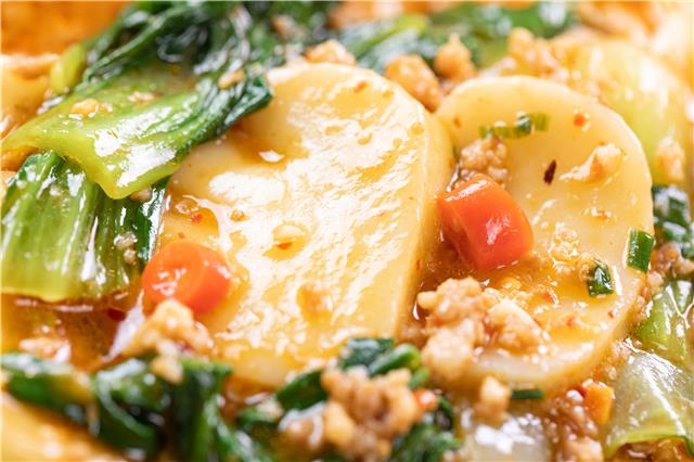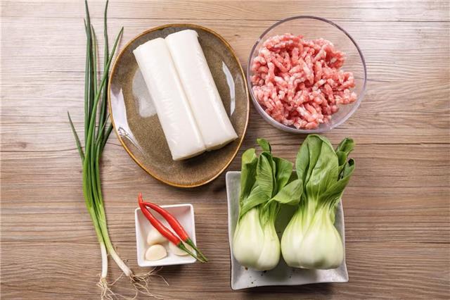 年糕2根 上海青2颗 肉末1碗