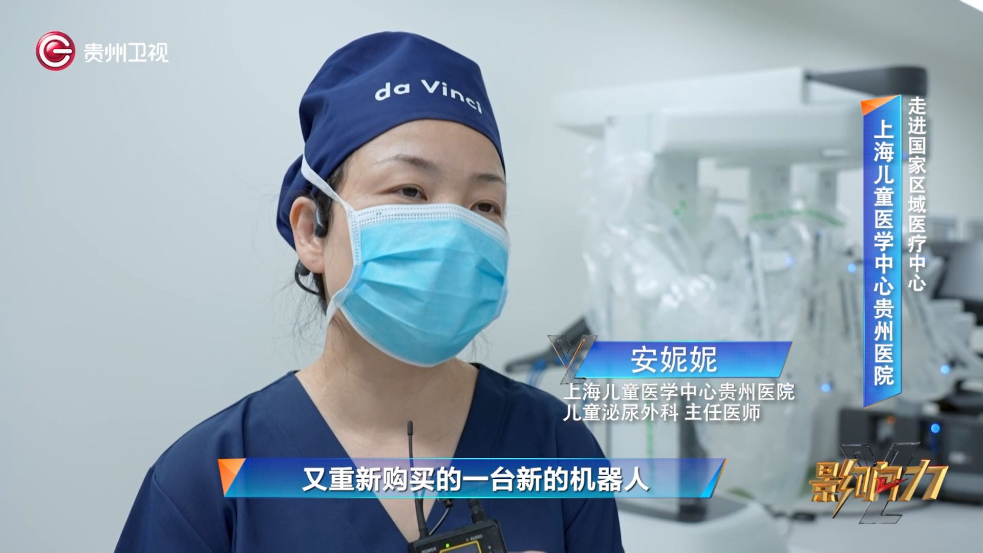 安妮妮 上海儿童医学中心贵州医院 儿童泌尿外科 主任医师:“身后的这台机器人是我们国家区域医疗中心成立以后,又重新购买的一台新的机器人,包括一些比较复杂疑难的‘后腹膜肿瘤’(手术)等,有了(上海)专家的支持,我们就更有底气。”