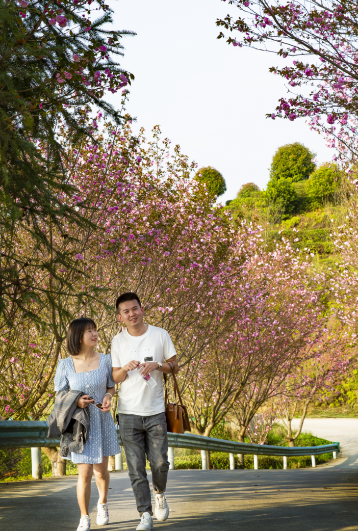 樱花初绽,满山浪漫。