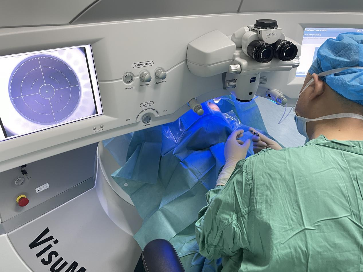 经全面术前检查,晓兰双眼裸眼视力右眼仅为0.4,左眼仅为0.6,矫正视力可达1.0。其双眼角膜厚度适中,眼压正常,眼底结构基本健康,符合屈光手术指征。廖进军主任依据其检查数据,量身定制了个性化飞秒激光手术方案,旨在精准矫正双眼近视度数,同时保留充足角膜安全厚度,确保术后视觉质量最优化。