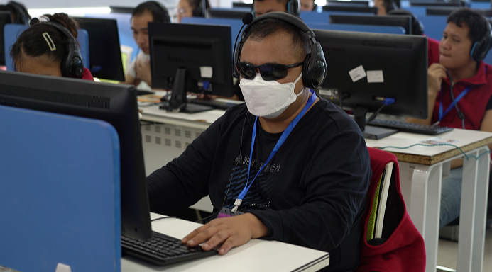 考试当天,241名考生需要参加上午的综合笔试和下午的实践技能考试。工作人员介绍,视力障碍人士在各类残障中障碍较大,医考对于他们有一定的难度,特别是综合笔试,除了需要掌握专业课程外,还需要对计算机操作有一定的熟悉。