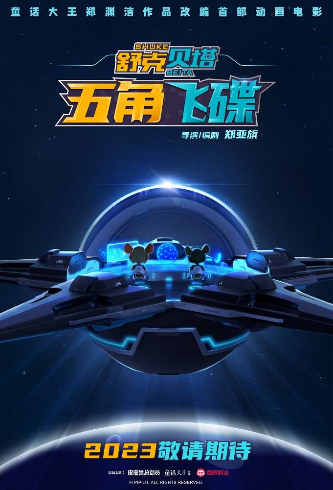 《舒克贝塔之五角飞碟》由皮皮鲁总动员、浙江东阳海童影视文化有限公司、天津猫眼微影文化传媒有限公司出品,安徽心梦文化传媒有限责任公司联合出品。改编自“童话大王”郑渊洁同名原著,由郑亚旗执导,即将在2023年与大家见面。
