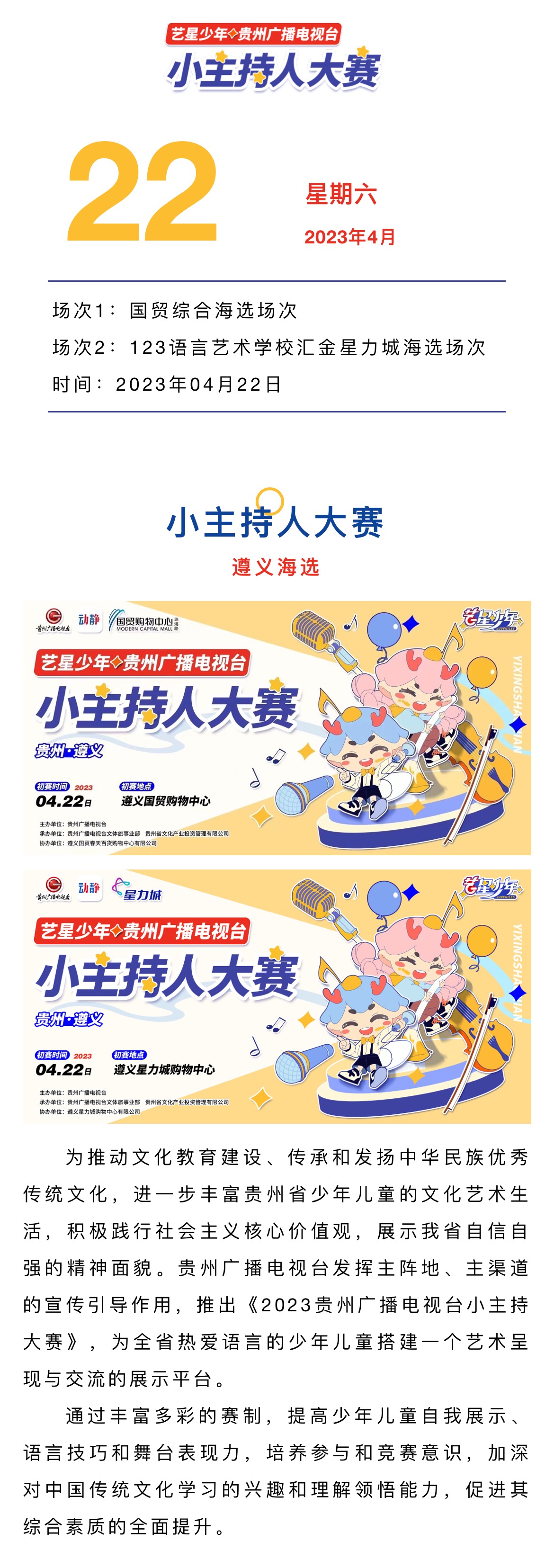 “艺星少年”贵州广播电视台小主持人大赛——遵义海选赛倒计时1天!