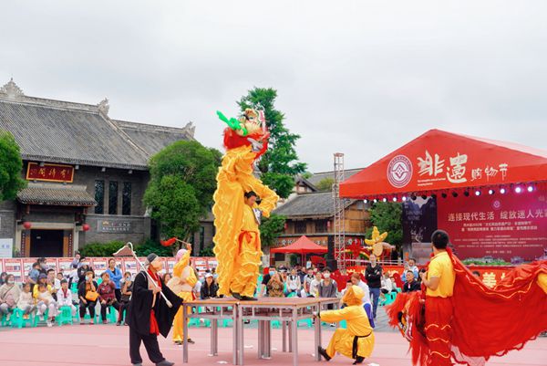 本届“非遗购物节”活动内容丰富、形式多样,时间为期2天,主题为“连接现代生活 绽放迷人光彩”,以线下非遗集市、线上“非遗+电商+直播”模式,线上线下同步举行,利用多平台流量助力全市非遗产品宣传和销售,营造非遗惠民、利民的良好氛围。高台舞狮、大寨地戏、布依族土歌、六合拳与苗棍、彝族二胡、抢鼓棒等6个艺术性强、富有吸引力、能展现中华民族优秀传统文化和增强中华民族大团结的非遗代表性项目在活动中陆续轮番上演,让非遗贴合群众、走进群众生活。