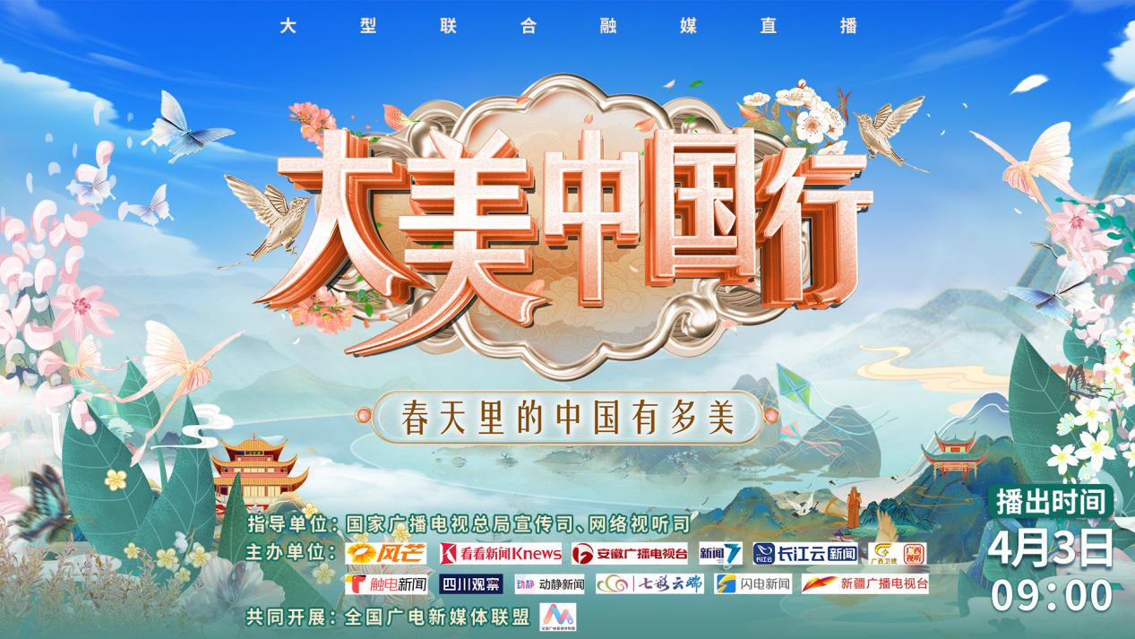 由国家广播电视总局宣传司指导,湖南广播影视集团(台)、上海广播电视台、安徽广播电视台、江西广播电视台、湖北广播电视台、广东广播电视台、广西广播电视台、四川广播电视台、贵州广播电视台、云南广播电视台、新疆广播电视台、山东广播电视台共同主办的大美中国行·春天里的中国有多美——大型融媒体联动直播活动将于4月3日九点起,在各省区市广播电视台主要新媒体平台播出。