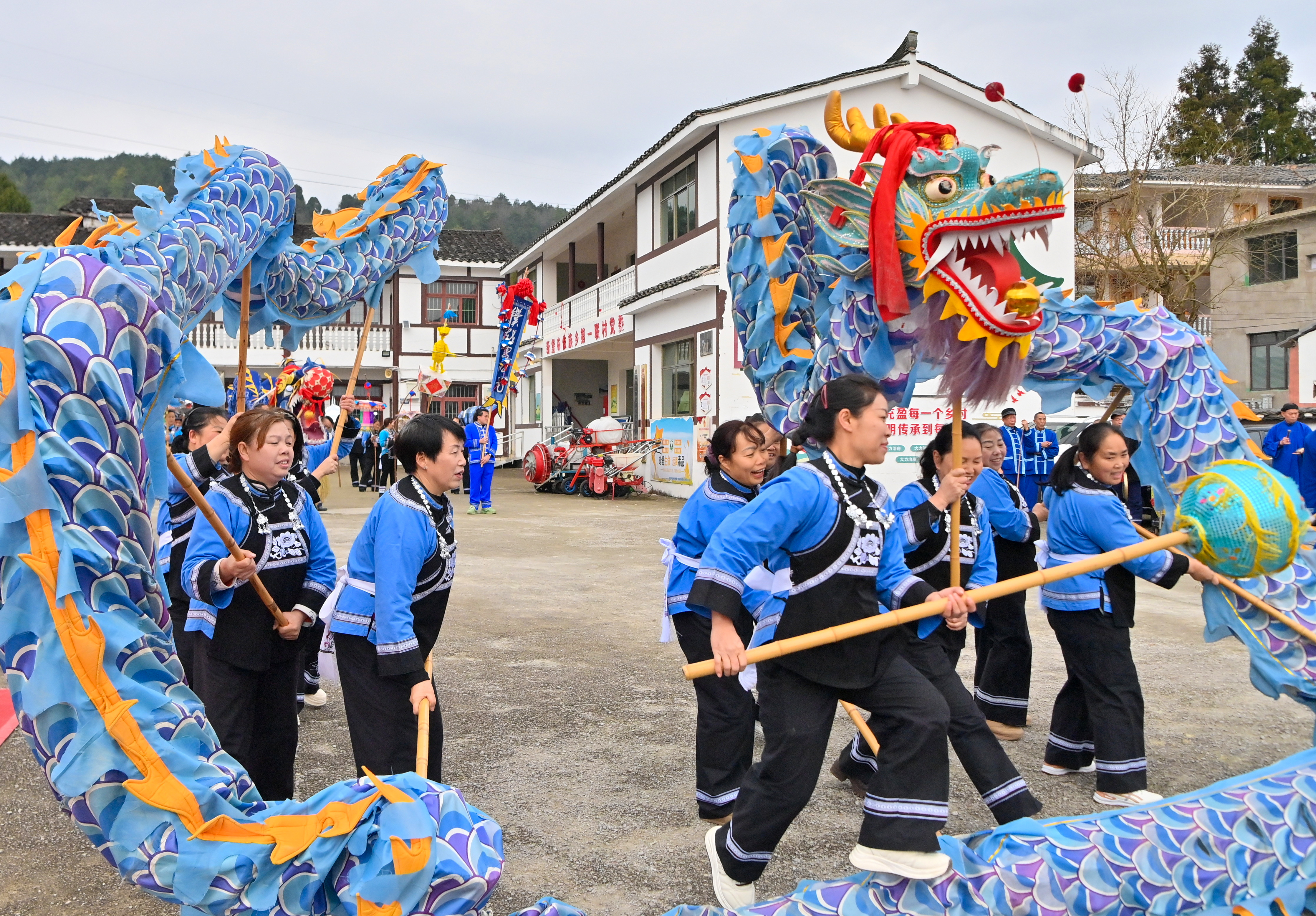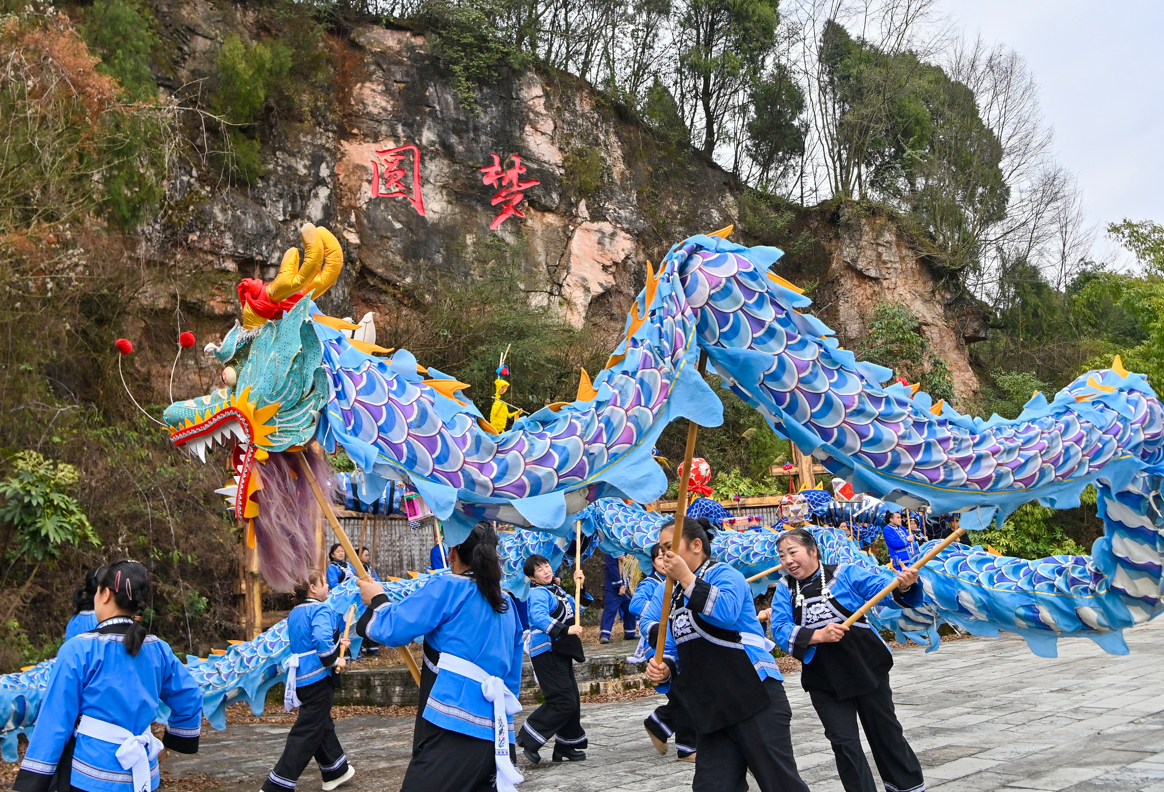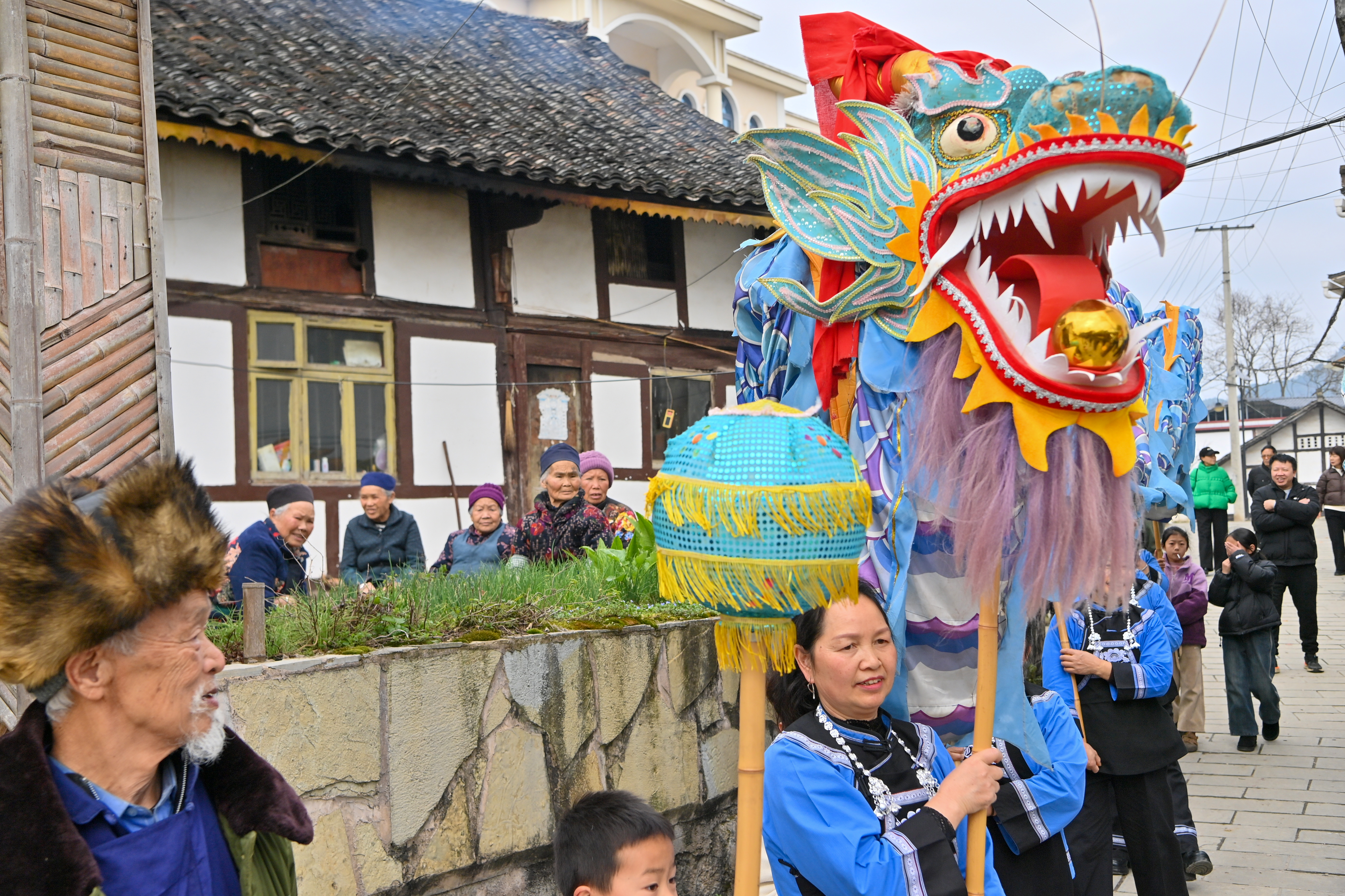 贵阳:布依族舞龙灯闹新春,乡村年味浓