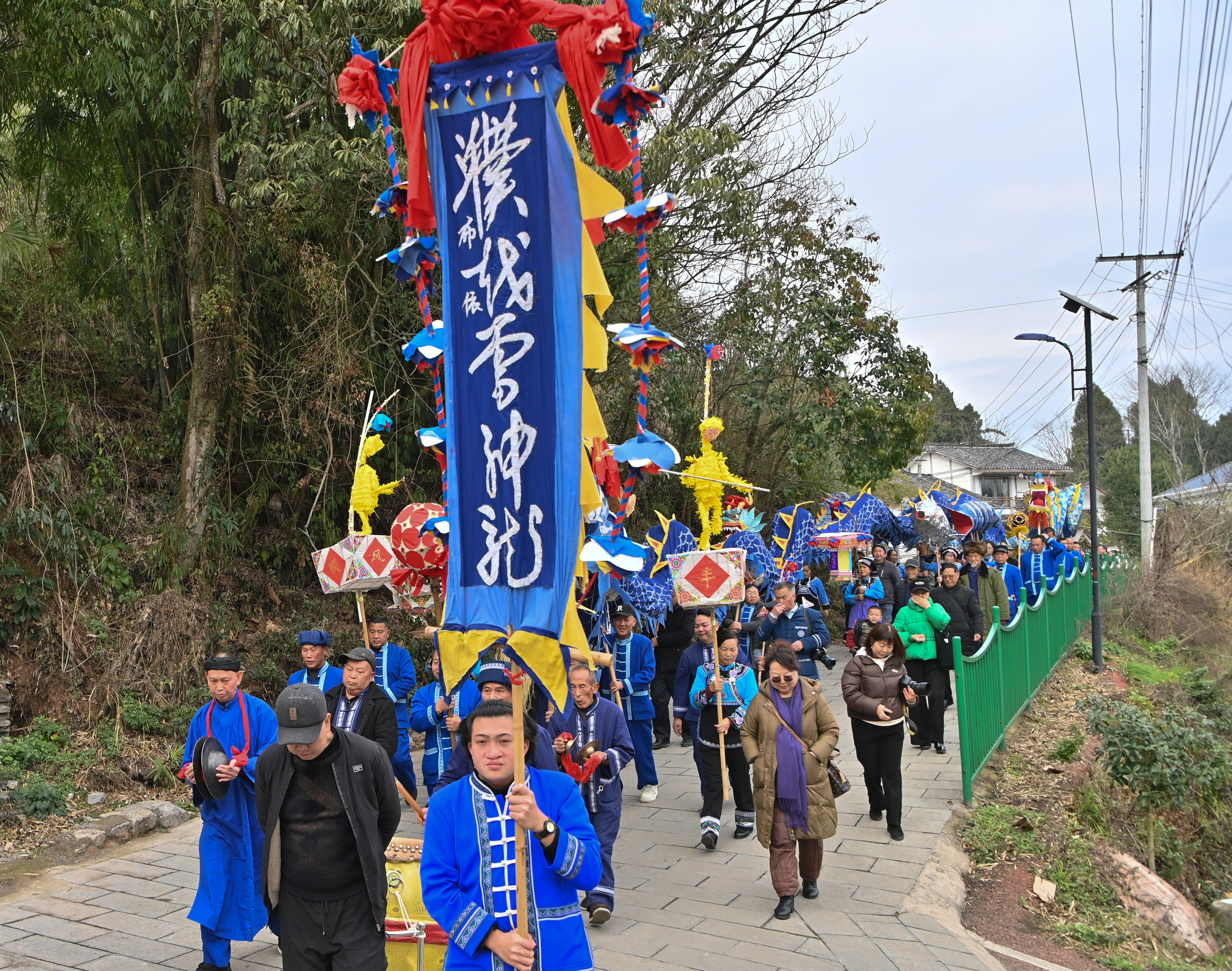 2026年2月11日,贵阳市乌当区新堡乡马头村新寨举行迎新春“濮越雷神龙灯”舞龙灯民俗活动,为村民们送上浓浓的年味与新春祝福。现场锣鼓喧天、欢声阵阵,为即将到来的新春佳节增添了浓郁的布依族传统韵味和热闹喜庆的氛围。