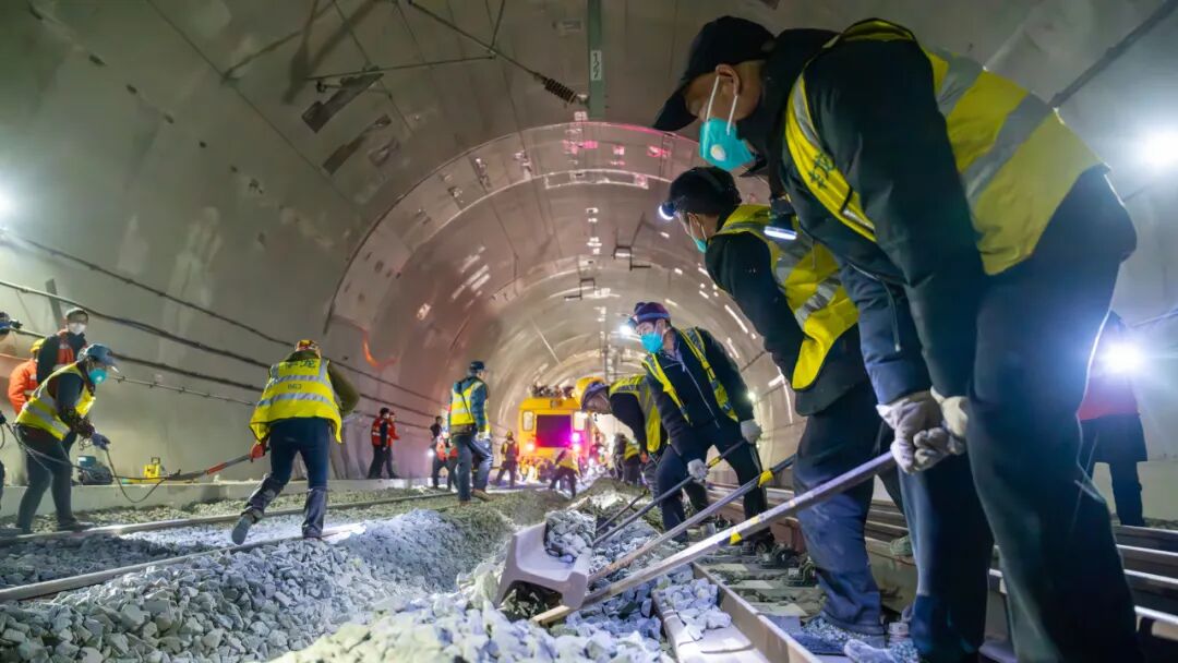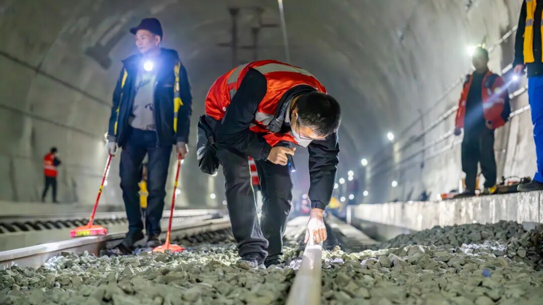 施工前,宜宾工电段深入隧道内部,全面掌握隧道结构、空气条件、线路状态等基础情况。各专业组据此制定“一隧道一方案”施工策略。每日列车停运后,成都工务大机段调集桥隧清筛车、捣固车等18台大型养路机械设备,完成对轨道的道砟更换、线路捣固等作业,并在次日首班动车开行前完成线路检测,避免对日间动车组正常运行的影响。