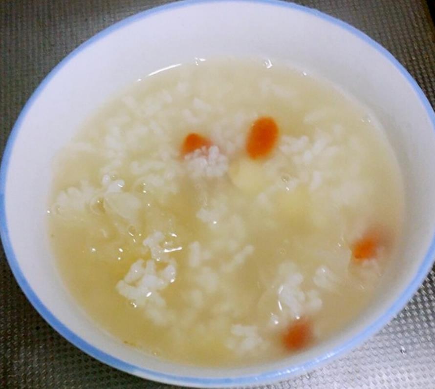 百合50克,粳米100克,淘洗干净,放锅内,加水,用武火煮沸后改文火煨煮,待烂熟时放入银耳20克、冰糖10克,焖煮即成。