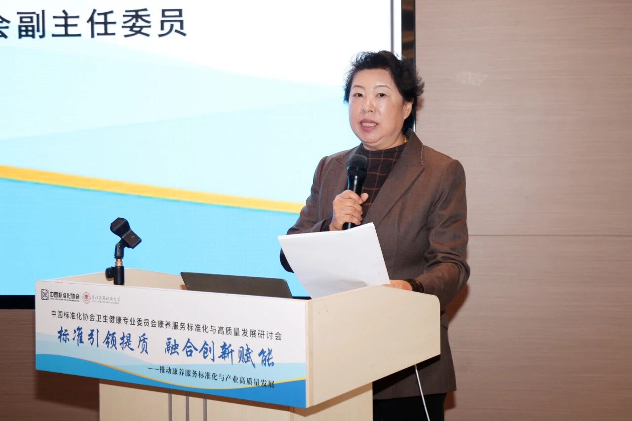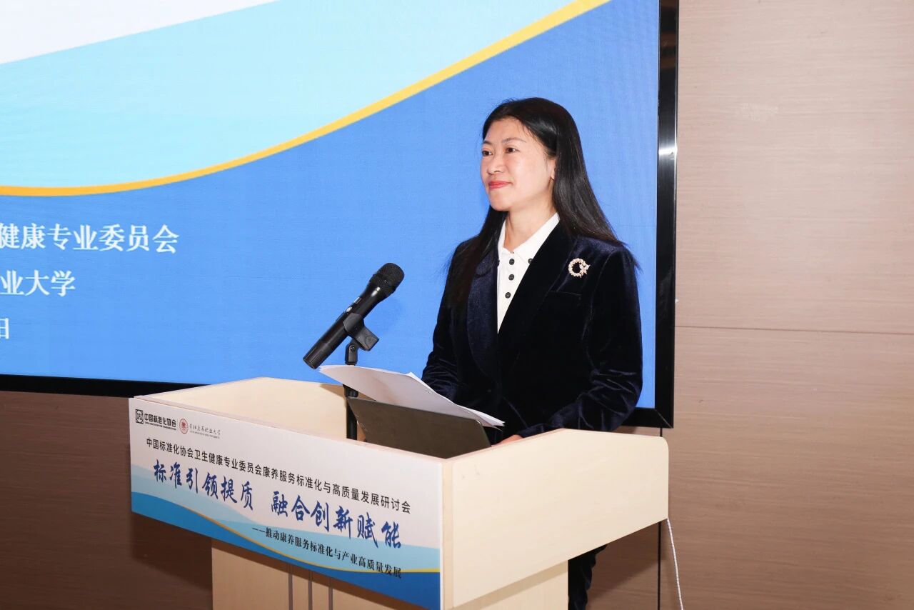 于欣丽致辞并作主旨报告。作为我国标准化领域的著名专家,于欣丽从国家战略和全球视野出发,深刻阐释了标准在推动康养产业高质量发展中的核心价值与实施路径,强调了标准化工作在引领康养产业提质增效、实现创新融合中的基础性、引领性作用,为与会者提供了重要的理论指导和前瞻性的实践方向。