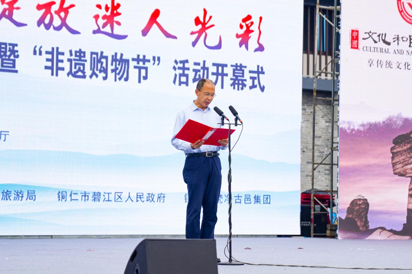 省文化和旅游厅二级巡视员史静一、铜仁市人民政府副市长杨云出席开幕式并致辞。铜仁市政协副主席、市文体广电旅游局局长刘五星出席并主持本次开幕式,省文化和旅游厅非遗处处长王竹、铜仁市委宣传部副部长彭钟亮、铜仁市文体广电旅游局党组书记张成勇、各市州文体广电旅游局领导及铜仁市旅游产业化成员单位相关领导出席开幕式。
