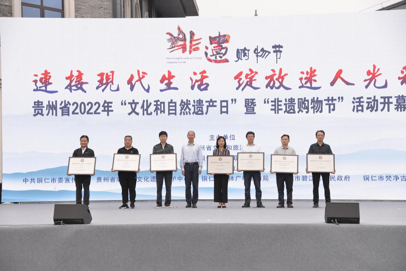 开幕式上,为第五批国家级非物质文化遗产代表性项目和贵州省非物质文化遗产传承人研培基地进行了授牌仪式,并发布了贵州省非遗主题旅游线路。
