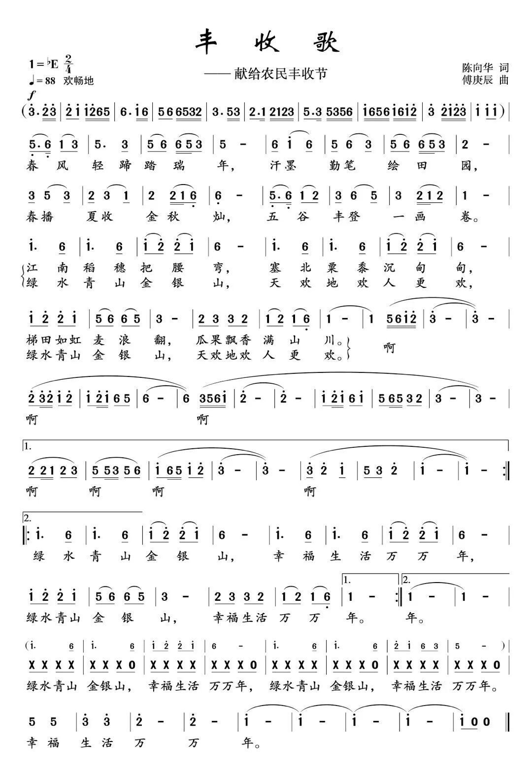 《丰收歌》是著名作曲家傅庚辰新创作的一首歌曲,东北气息非常浓厚。歌曲小巧,清新流畅,平易近人,易于演唱和流传,是傅庚辰先生为家乡、为美好生活深情创作的一部优秀作品。