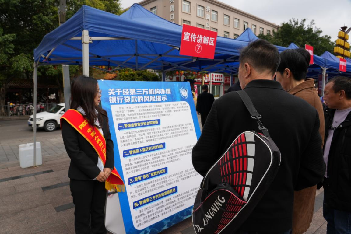 工作人员通过发放宣传折页、面对面讲解等方式,用通俗易懂的语言向过往的中老年人普及防范非法集资、识别电信诈骗、保护个人信息安全、反洗钱等金融知识,引导老年朋友守护好自己的“钱袋子”。