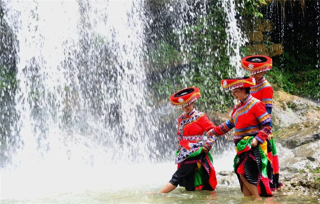 夏日里的米底河似白虹饮涧,九曲回肠,晴雪飞摊。“香炉初上日,瀑水喷成虹。”暂舍繁华步深山,一半烟火一半清欢。