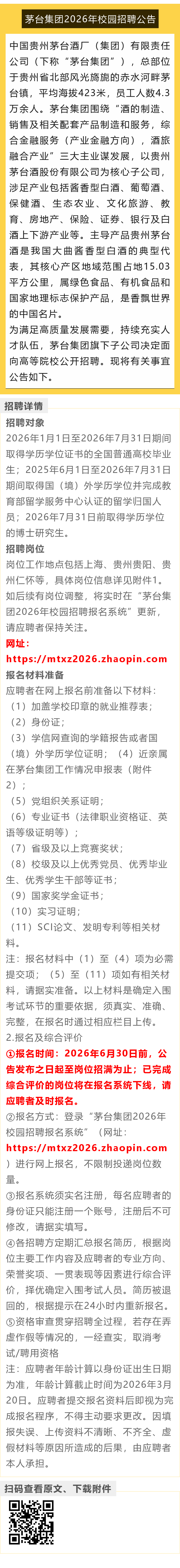 89人!中国贵州茅台酒厂(集团)有限责任公司招聘!