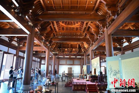 再现宋时风貌、承载宋韵文化……近日,记者走进浙江杭州,探访南宋德寿宫遗址博物馆。据了解,德寿宫遗址是南宋临安城内一处极其重要的宫苑遗址,宋高宗、吴皇后、宋孝宗、谢皇后等历史人物曾居住于此,是南宋礼制规格最高的建筑之一。图为重华宫内的榫卯结构吸引参观者。