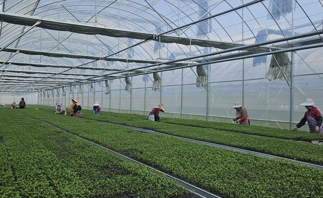 春耕启序,农事正酣。贵州农发集团下属企业贵州蔬菜集团有限公司(以下简称蔬菜集团)安顺旧州育苗基地内,温室大棚里鳞次栉比、绿意盎然,番茄、茄子、辣椒等蔬菜幼苗长势喜人、整齐列队,工人们正有条不紊开展间苗、嫁接、管护作业,一派春耕育苗景象。作为区域内规模化、标准化育苗核心阵地,基地以科技赋能春耕,为安顺市乃至周边地区农业生产注入强劲动能,彰显国企担当。