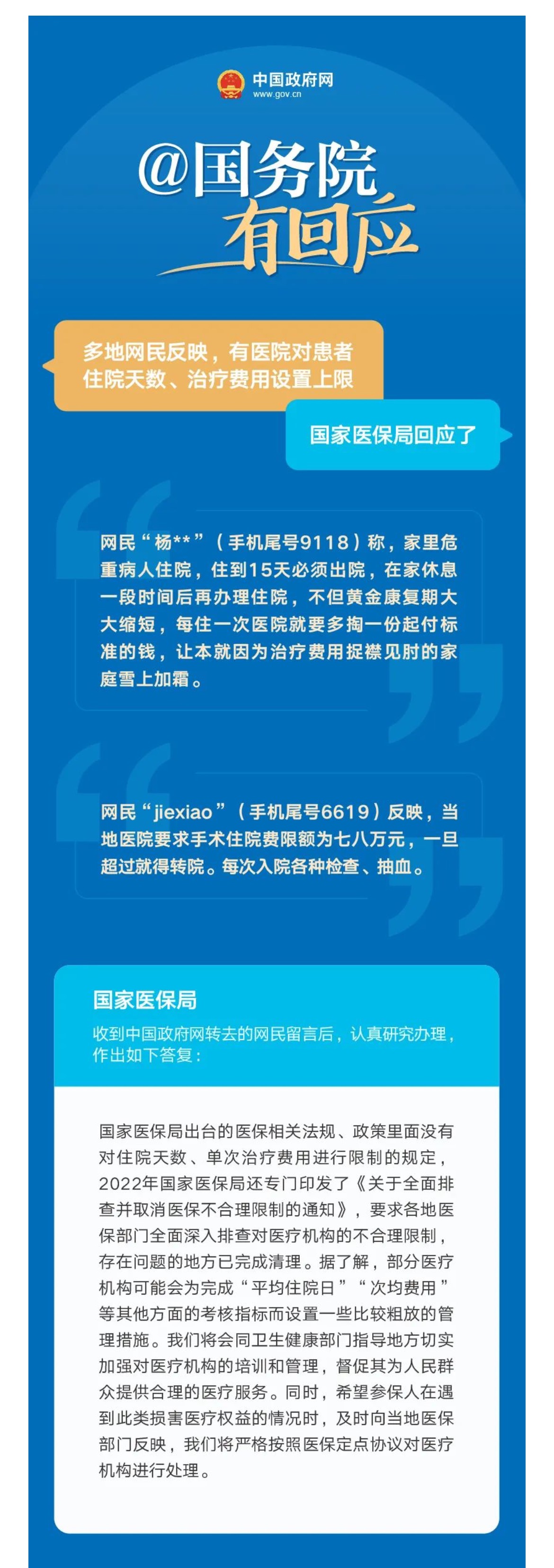 动静健康 | 网民反映有医院对患者住院天数、治疗费用设上限?国家医保局回应