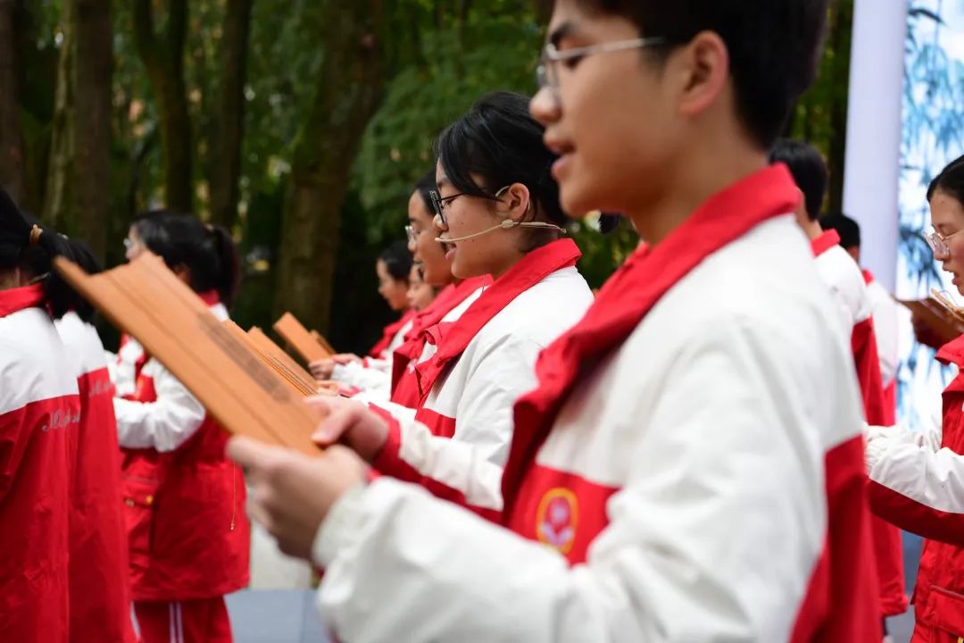 曾强在致辞中说道,杏坛公园以“‘城市绿道’+‘百年名校’”为设计主线围绕贵阳一中沿线而建,将公园景观建设与贵阳一中的百年教育历程深入融合,让市民朋友在漫步街区,感受城市温度的同时能够打卡一中文化,弘扬端棻教育思想,体现了省教育厅、市教育局、区委、区政府对文化教育事业的重视,更是对贵阳一中的厚爱。杏坛公园文化设计理念高雅,紧紧围绕百年一中的教育历史来设计,不仅具有历史文化价值、旅游观光价值、城市绿化价值,还有着更加深刻的教育意义。贵阳一中将不忘初心、牢记使命,砥砺前行,继续为党育人、为国育才,追求高质量发展,办好人民满意的教育,不断为杏坛公园谱写更多教育故事,增添更多光彩成就。