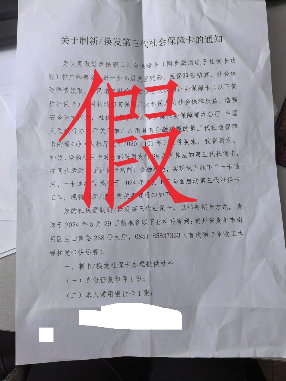 有不法分子假冒社保部门名义
