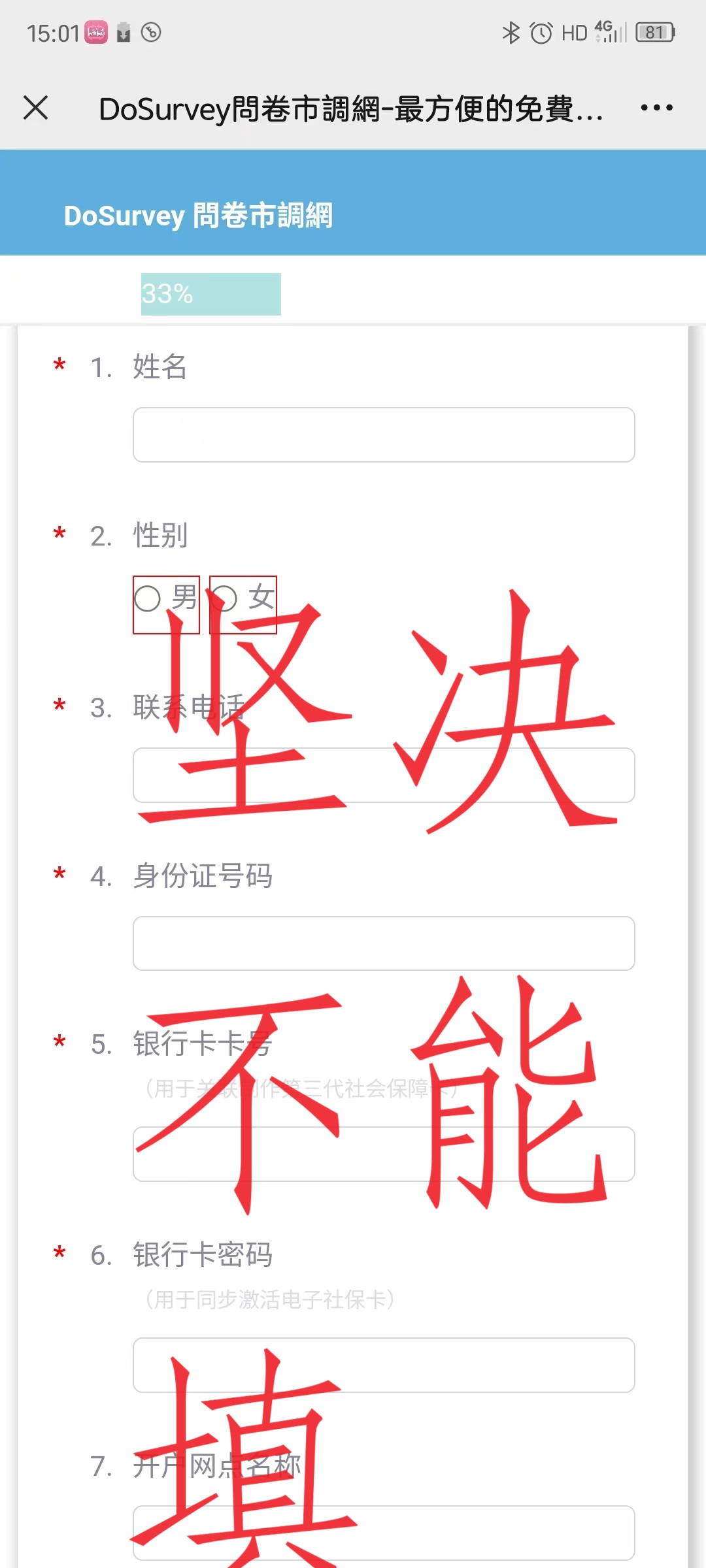 随意透露、填写个人身份信息