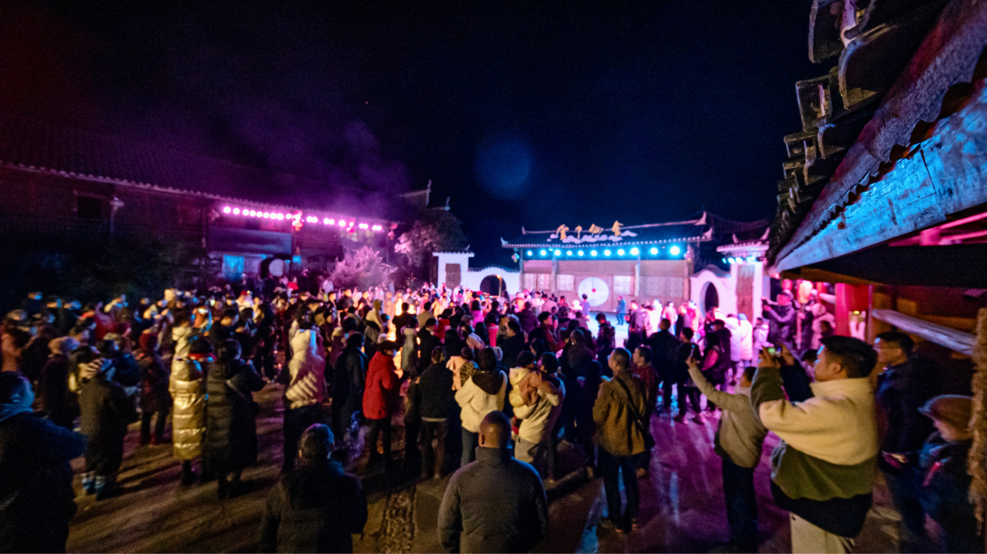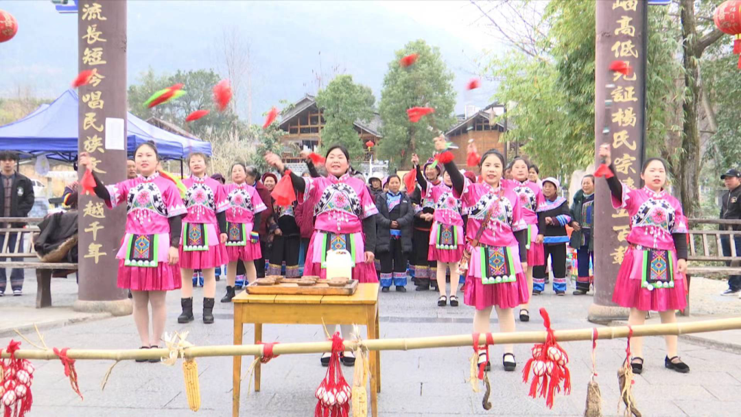 1月25日,在铜仁云舍景区门口,拦门酒、山歌对唱、抬花轿、敲锣打鼓,引来许多市民、游客纷纷拿出手机拍照,随处可见的娱乐设施、街边各种美食小吃摊,处处洋溢着欢乐祥和的节日氛围。在云舍演艺场,节目《土家鼓舞》《土家民族秀》等极具少数民族特色的表演纷纷上演,让游客感受到土家的独特年味。