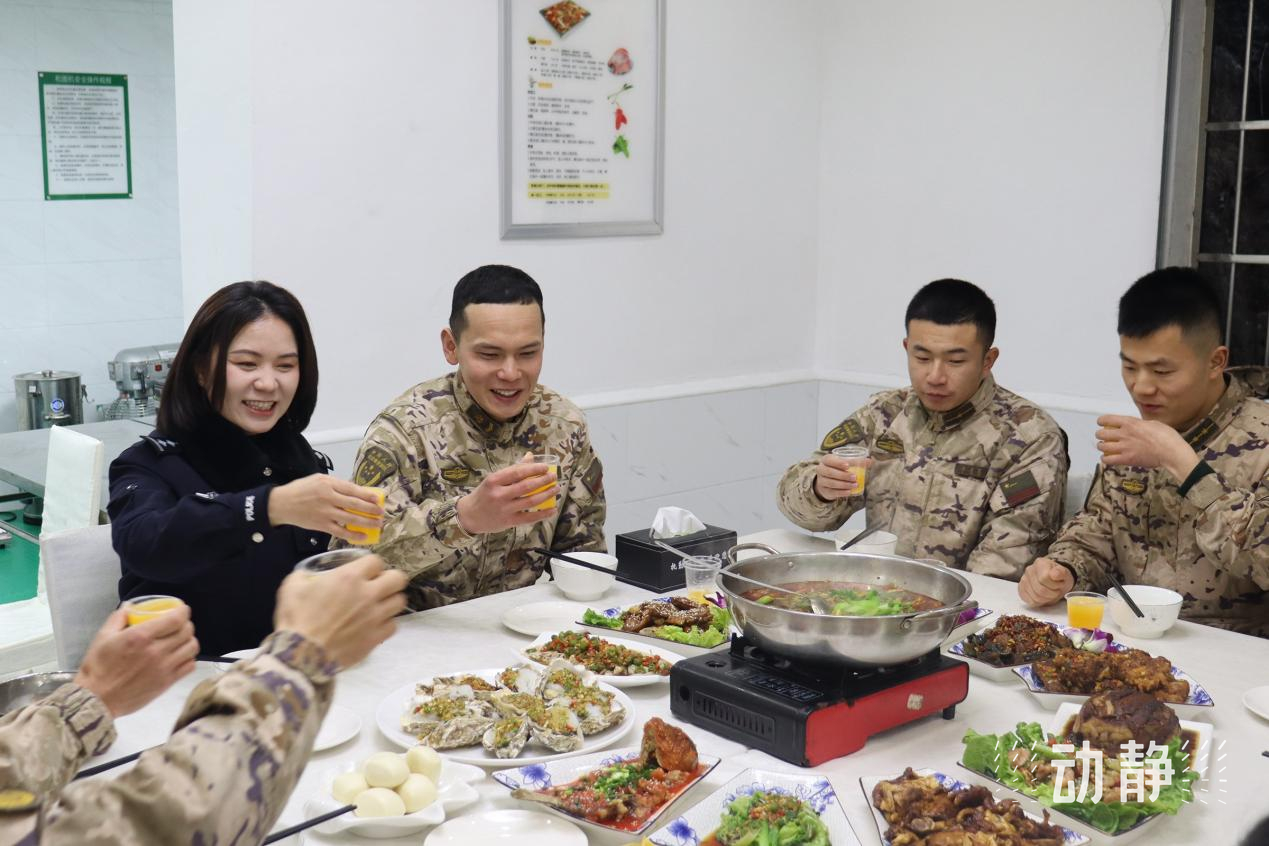 春节期间,两人都坚守岗位,无法像普通夫妻一样共度佳节。除夕夜,武警贵州总队黔东南支队某中队邀请军嫂龙水燕来队团聚,大家一起吃年夜饭,让这个特殊的夜晚充满温情。龙水燕说,能和丈夫在一起,就是家。