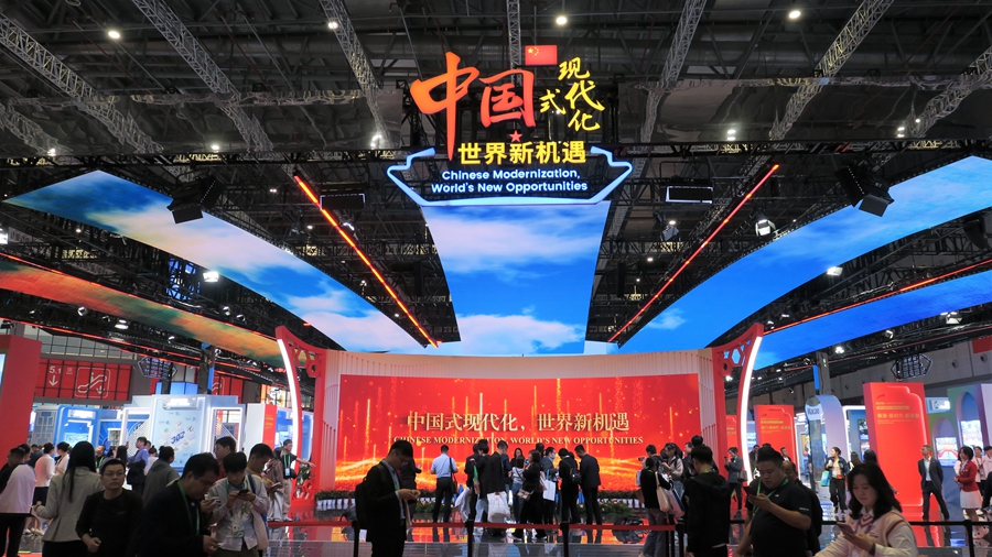 在第六届进博会国家展区,观众在中国馆参观。中国日报记者 徐小丹 摄