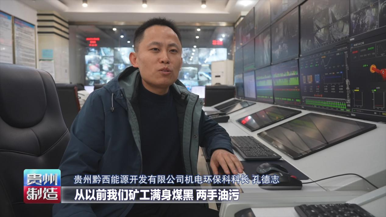 贵州黔西能源开发有限公司机电环保科科长孔德志介绍,从以前矿工满身煤黑、两手油污,变成了现在穿得干干净净在这儿坐镇指挥,心里更舒服了。