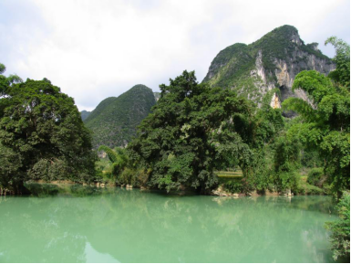 贵州境内由于碳酸岩的广泛分布,加之地质构造复杂,经过多次活动,形成了独特的喀斯特地貌。大井峰丛主要分布在地形平缓的高原分水岭平面上,峰体分散、矮小,呈星状散布,远观石峰成林,拔地而起,琳琅荟萃,峰丛层恋叠峰,连绵起伏。近看洼谷深陷,董当河惋蜒曲折,绿水青山,步行其中颇有“山重水复疑无路”的迷宫感觉。
