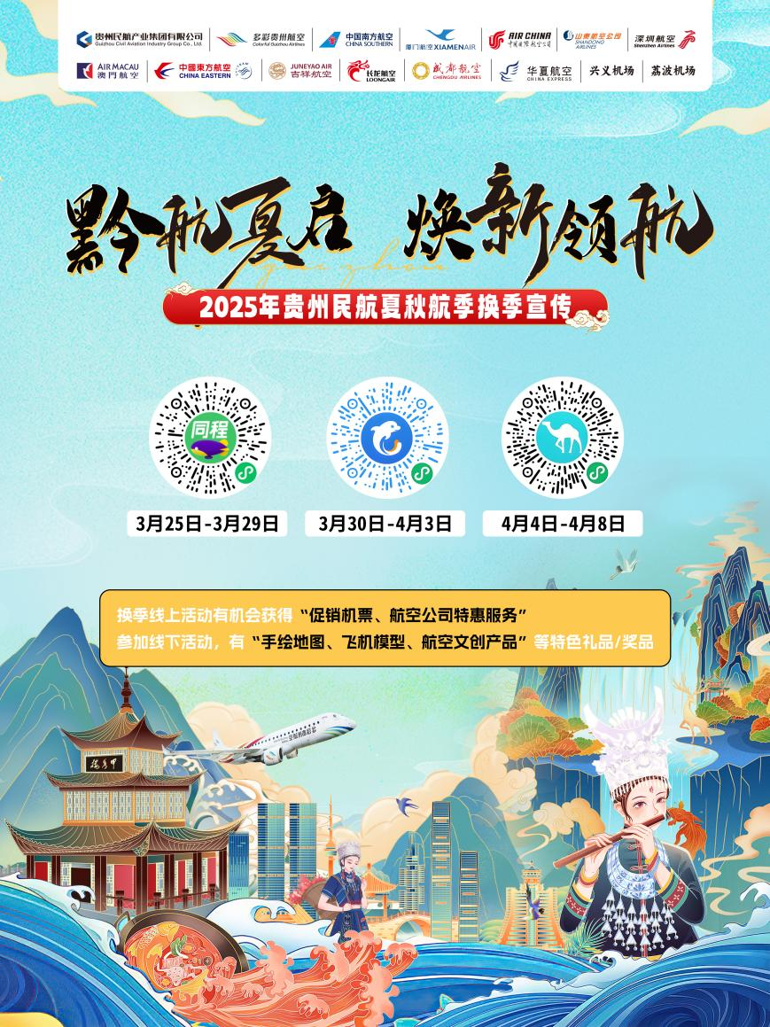 2025年夏秋航季来临之际,贵阳龙洞堡国际机场联合兴义机场、荔波机场、15家航空公司以及OTA平台(同程旅行、携程旅行、去哪儿网)举办线上专题促销(2025年3月25日-2025年4月8日)和线下推介活动(2025年3月29日走进贵阳砂之船·奥特莱斯),为广大旅客提供新航季“航线航班计划、出行优惠政策、机场与航司服务解答”等服务,参加促销活动的航线达210条,涵盖贵阳机场/兴义机场/铜仁机场进出港航班、国际地区航线航班、“支支串飞”航线航班、中转经停航线航班等。