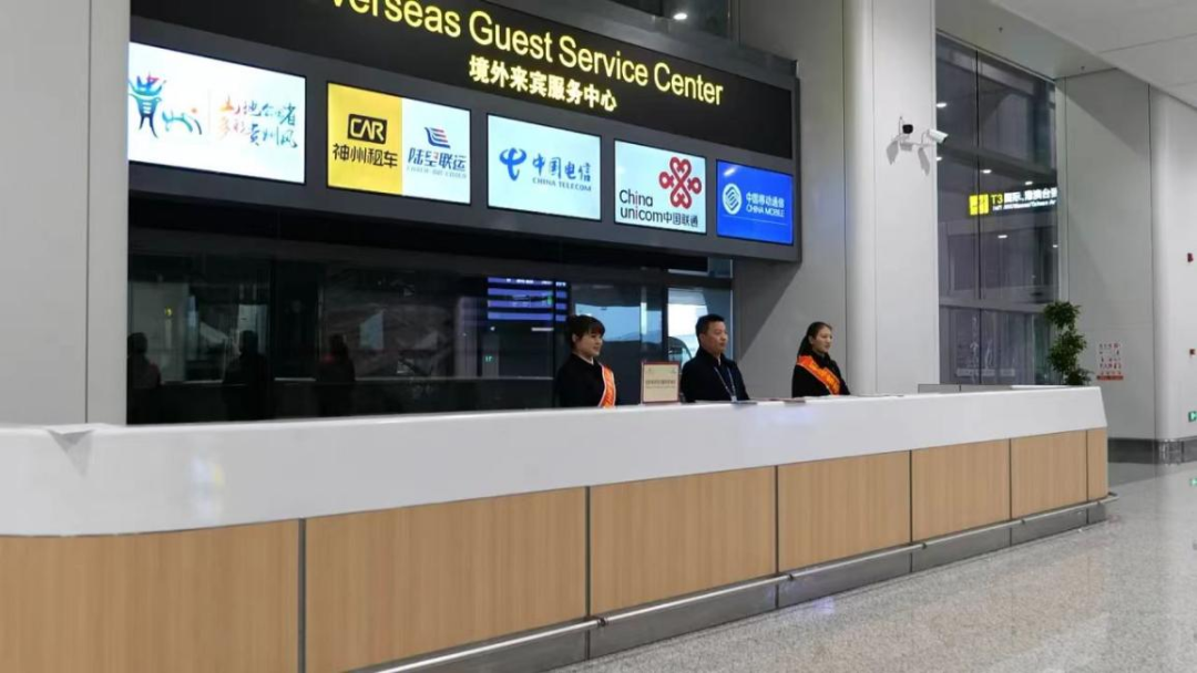 服务入境游方面,在国际到达接站厅设立境外来宾服务中心,设置旅游咨询、通讯业务办理、交通换乘、货币兑换等功能服务咨询柜台,配备ATM机等设备设施,航站楼内商业店铺visa、万事达等国际常见信用卡和借记卡支付功能全覆盖。服务中转旅客方面,提供免费中转休息厅、餐食及住宿等中转便利化服务,并大力推进航班中转接驳功能优化工作。