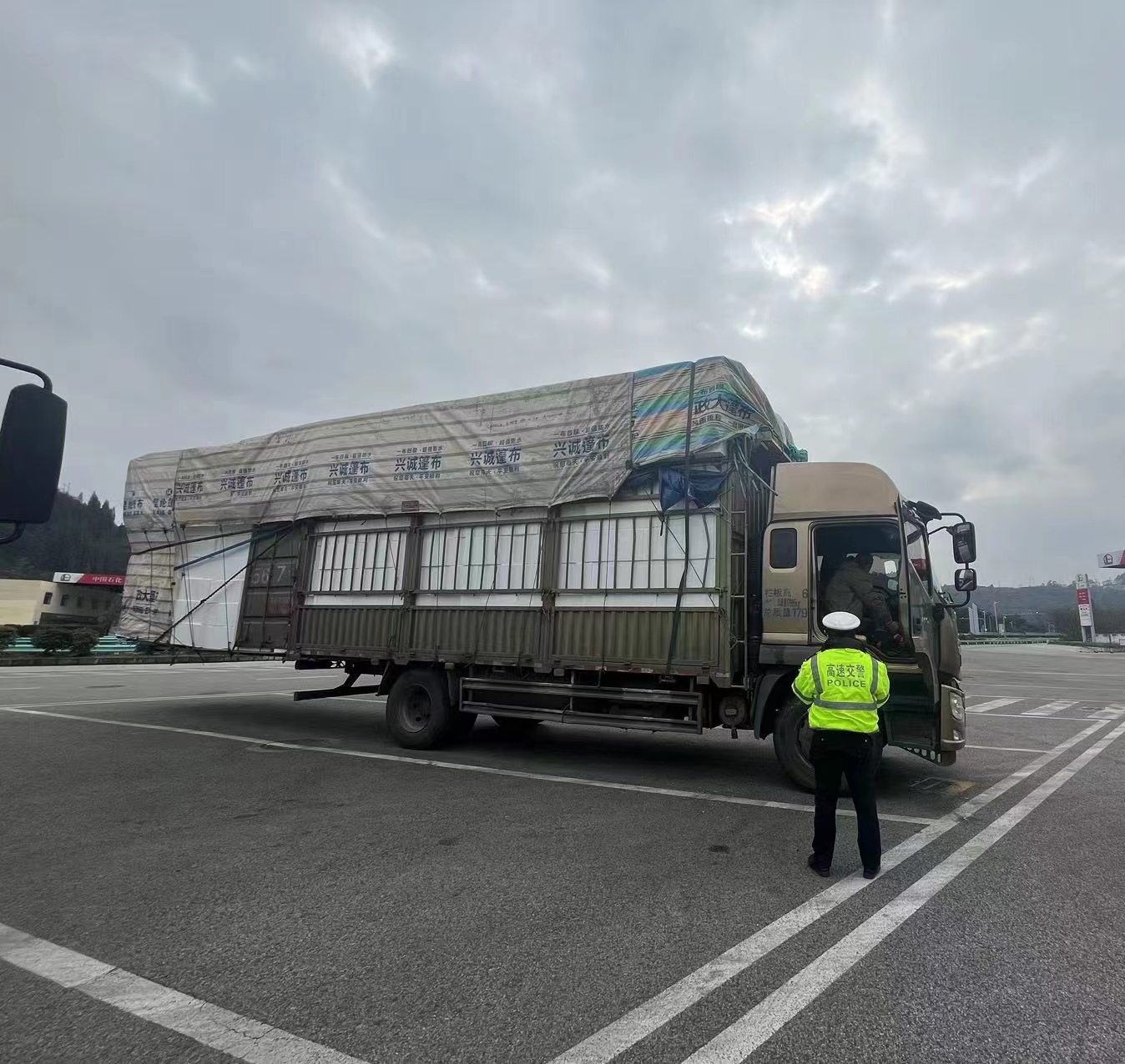 2024年1月23日,黔西南公安高速交警在开展路面巡逻时查处了一起货车违反规定载货的违法行为,及时消除了道路交通安全隐患。