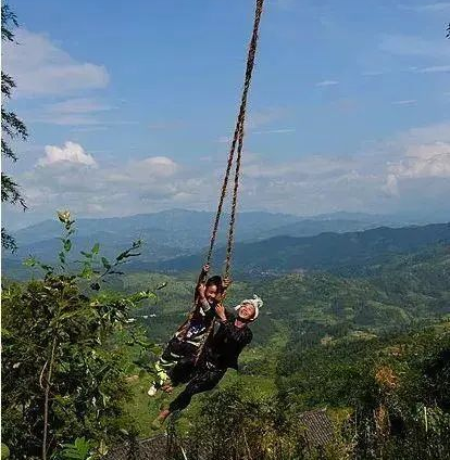 秋千节是从江县岜沙苗寨年轻男女相会的日子。每年农历六月卯、辰、巳日这3天,村民都要聚亲招友,而村中未婚男女,则以荡秋千的方式,寻找他们的心上人。